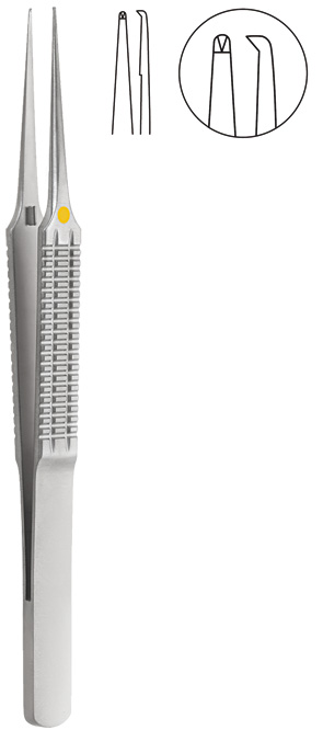 forceps, fine, 1 x 2 teeth, strongly curved